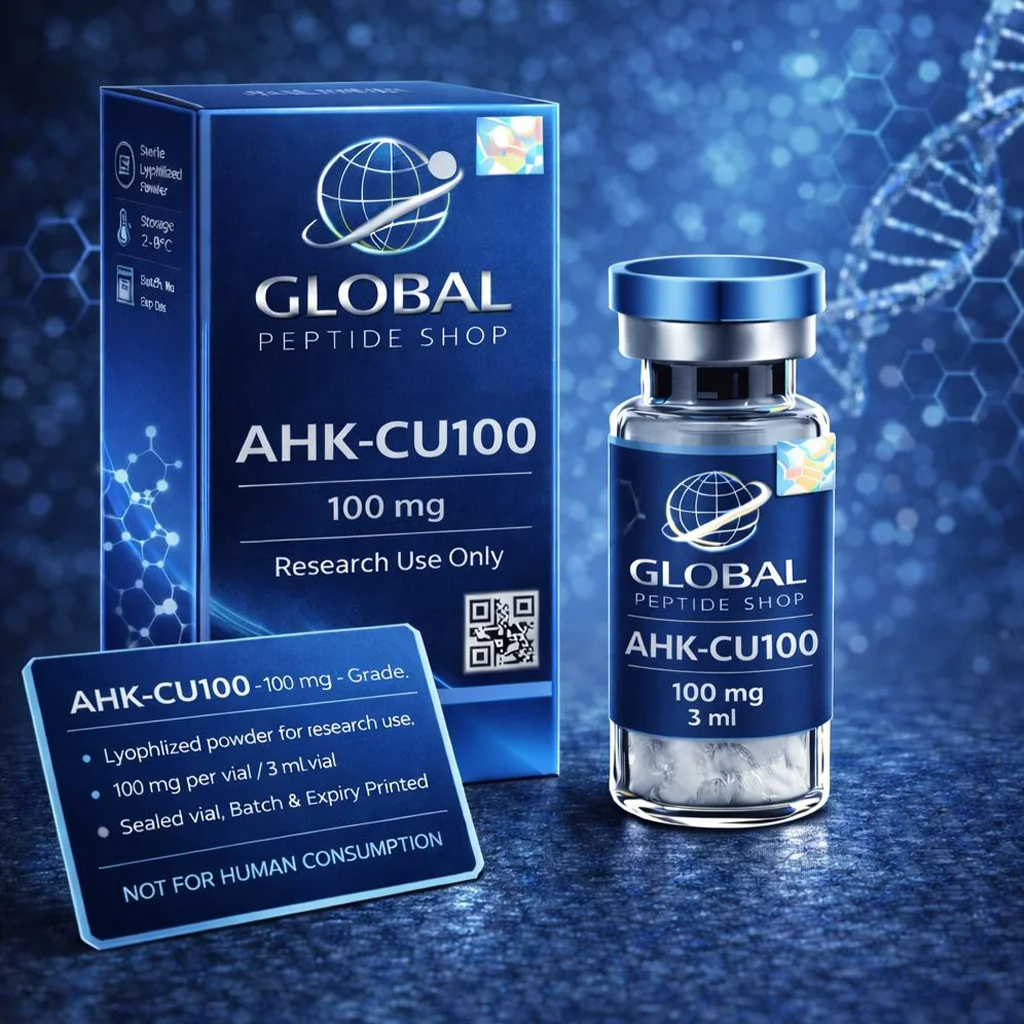 AHK-CU 100mg is a laboratory-grade copper-binding peptide compound developed for advanced biochemical and cellular pathway research. This formulation is supplied as a stable lyophilized powder to preserve structural integrity and ensure consistent laboratory performance.